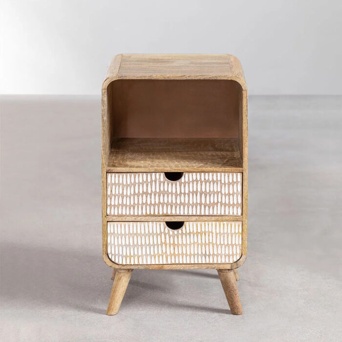 The Yulara mango wood bedside table with storage is going to become a must for your bedroom. Made of mango wood, a wood that not only makes it durable and resistant but also makes it an elegant and sophisticated piece of furniture. It has two perfect drawers to store your objects and always have them at hand when you need them most. From FURNDUNE we have fallen in love with this unbeatable piece of furniture, let yourself be captivated and make Yulara a bedside table that will not go unnoticed.